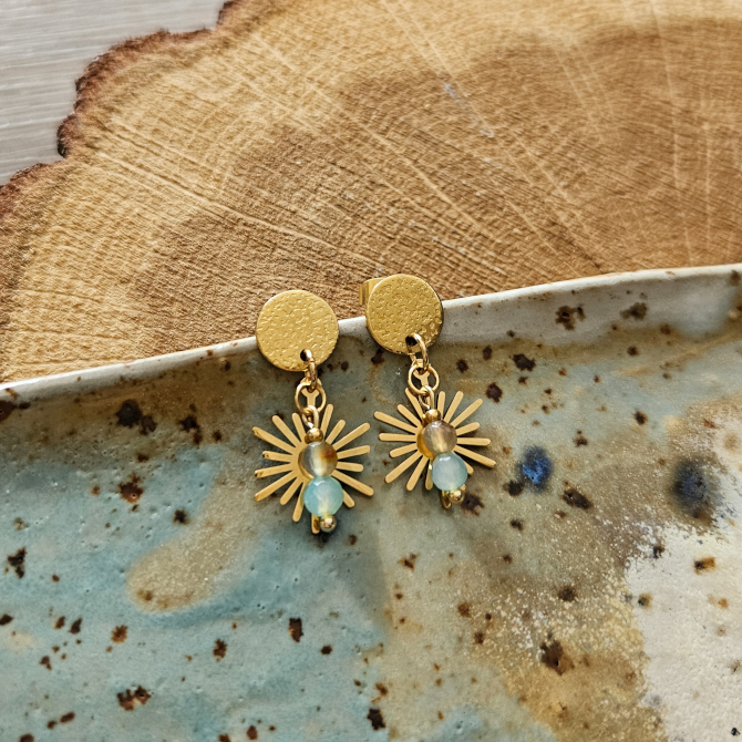 Kolczyki z agatem i zawieszką słońce