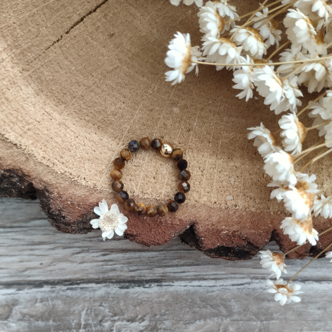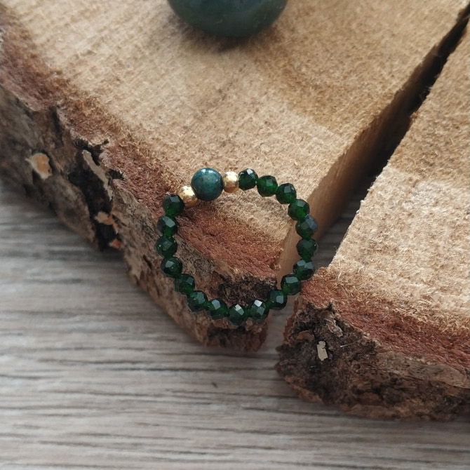 Pierścionek z kamieni naturalnych na gumce ręcznie robiony