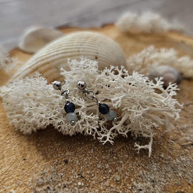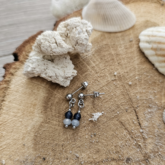 Drobne kolczyki o prostej formie, inspirowane barwami oceanu.