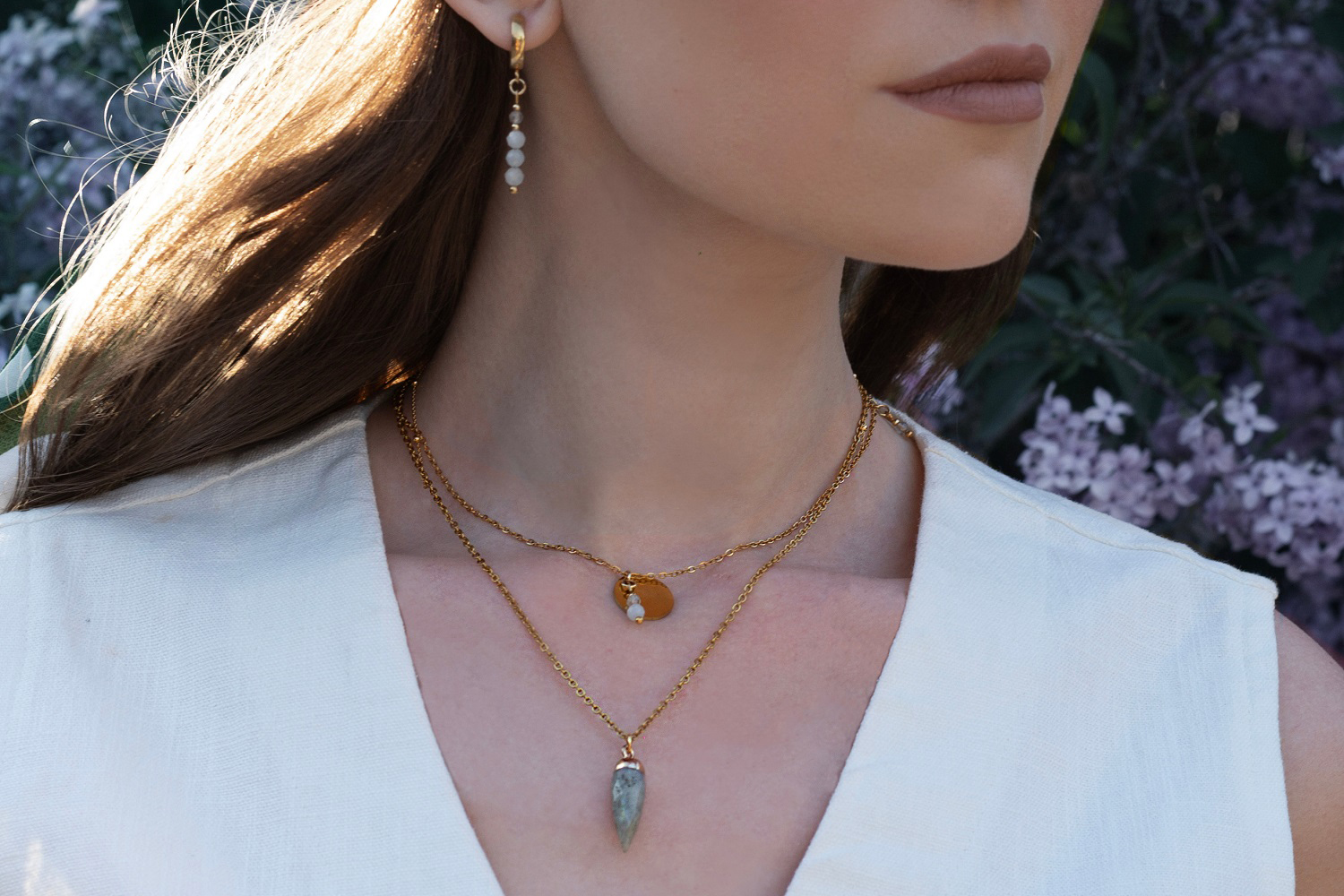 Czym jest łańcuszek regulacyjny? To bardzo praktyczne rozwiązanie, które pozwala lekko zmodyfikować długość biżuterii w zależności od stylizacji. Co więcej, łańcuszek regulacyjny sam w sobie może być ozdobą – zwłaszcza gdy na końcu pojawia się drobna zawieszka lub minerał, który subtelnie zdobi kark lub plecy przy odkrytych ramionach w letnich stylizacjach.